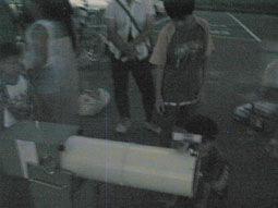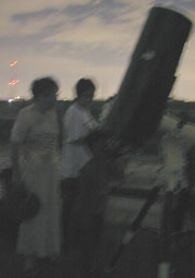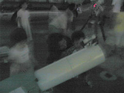 | 月を見ています。子供でも地べたにあぐらをかかないと覗けません。 | フラッシュをたかないで撮影したので、真っ暗だったのですが、画像処理してここまでわかるようになりました。もちろんこんなに明るいわけではありません。 | |